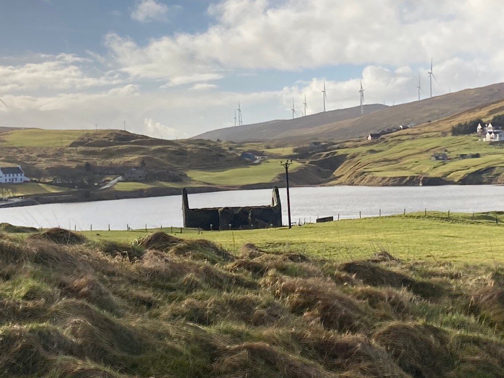 We had unpacked the vans by 11am, I had the tea bags but no milk so we headed up to Brae and the Coop there for some essentials. We did a drive round to Aith to see the cake fridge..( that’s a whole other post) and then my brother wanted to have his photo taken with the famous road sign, if you know, you know!