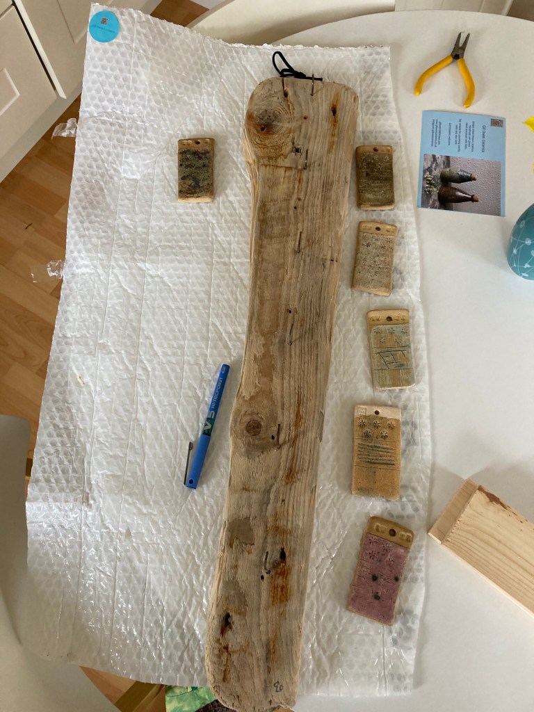 This week is ‘Voar Redd Up’ or Spring Clean. The islands organise a spring clean which you can join in your local area and go out with collecting bags and litter pick or clear the beaches of the rubbish that has been washed in. So I’m heading out later on to do my bit. I’ve also been gathering drift wood and drying it out to use with my pottery. I was grateful to complete a commission piece and send it to its new home last week. The advantage of working in a CDT department is access to the woodworking equipment so I’m learning new skills again in different media.