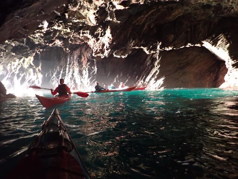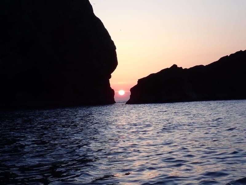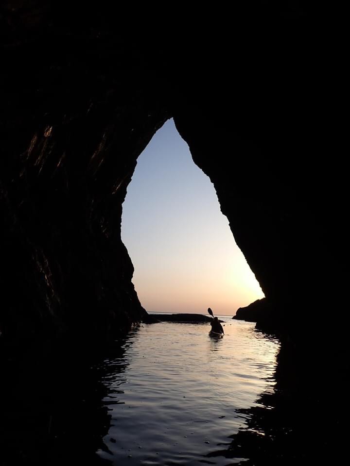 There are some more sea paddling trips and as the wind speeds and swells increase the chance to go out in bigger seas and gain more skills and confidence are too good to turn down. On a day paddle out exploring caves and rock hopping my paddling buddy points and we are paddling with an otter, it doesn’t see us at first, we drift and watch it manoeuvre gracefully. Suddenly it spots us and with a dive is gone. We watch for a while incase it resurfaces but nothing. Then as we return to almost the same spot a few hours later there it is again, it doesn’t see us and this time with a fish in its mouth climbs onto the rocks and begins to devour its catch.
