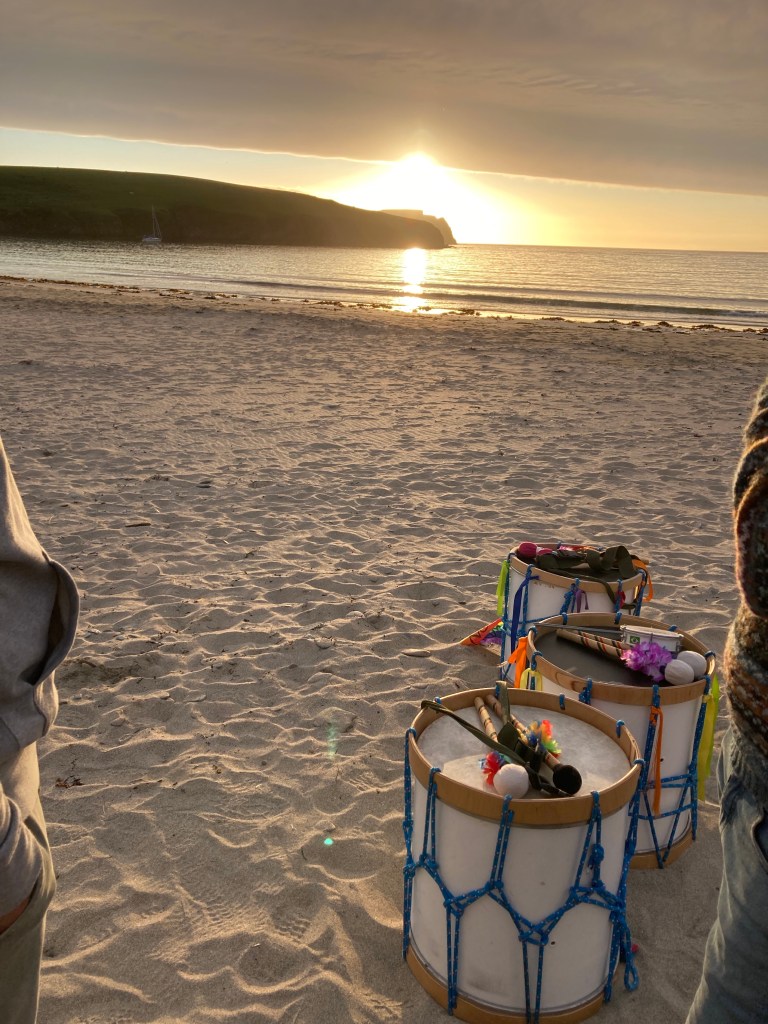 I’ve played with the Samba band, been on a kishie basket making course, volunteered with tree planting and at the inaugural Rising North Festival, attended concerts, yoga, sound baths and dances, sold work at craft fairs and been able to put work in the beautiful Shetland Gallery. There have been faint glimpses of the Mirrie Dancers and beautiful moons and starry skies.