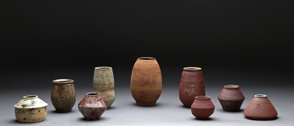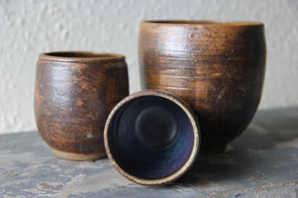 Hand thrown ceramics produced with wood ash glazes and foraged wild clays.
